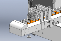 | 推料機(jī)構(gòu): 通過理料機(jī)過線到物料輸送帶上,通過偏心輪和導(dǎo)軌把產(chǎn)品送入紙盒,完成裝盒動(dòng)作 |