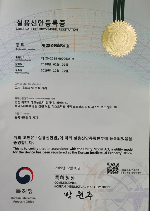 我司”面膜機韓國專利已經(jīng)下來,可喜可賀!
